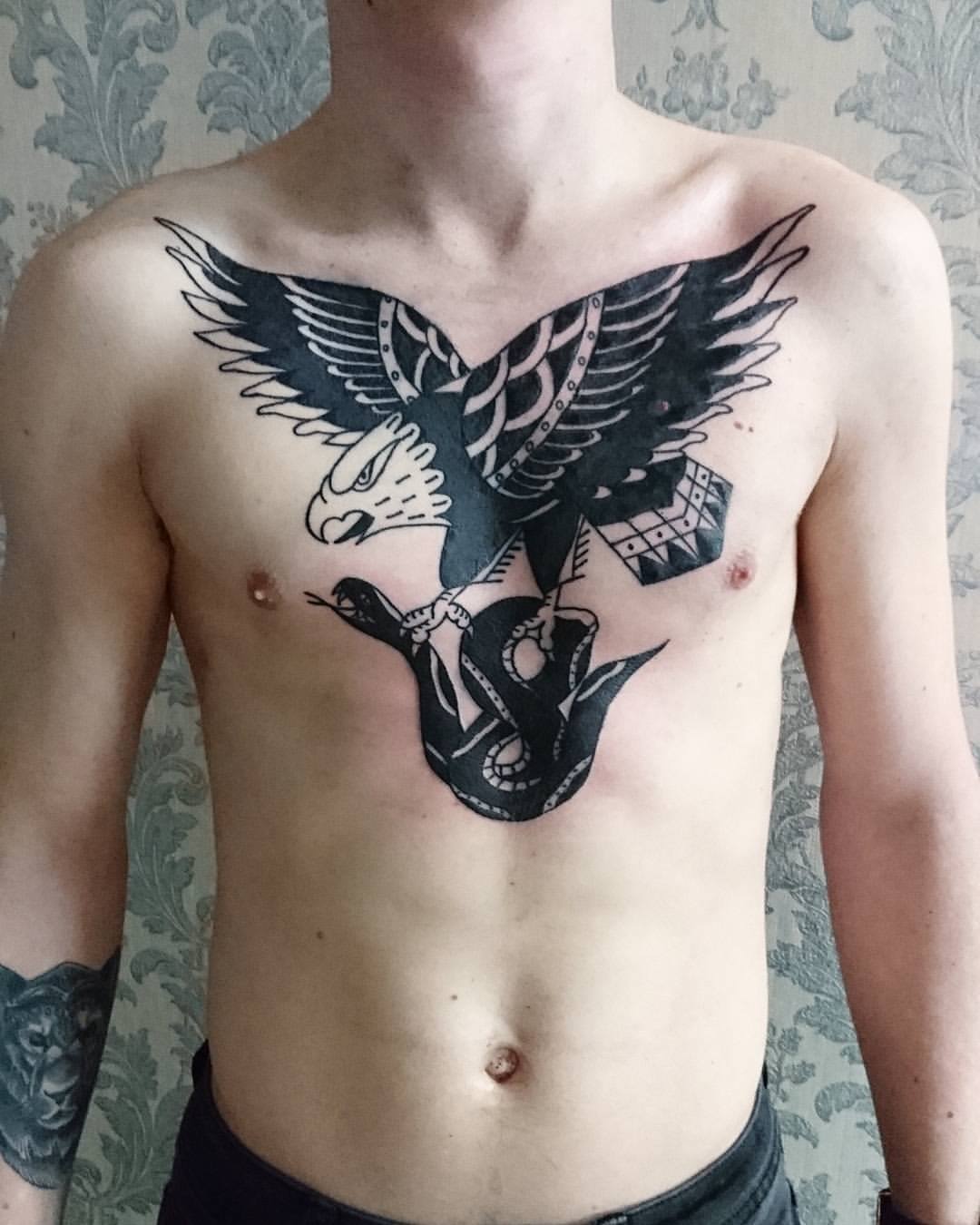 Black & Grey Chest Tattoo Alexis Vaatete TrueArtists