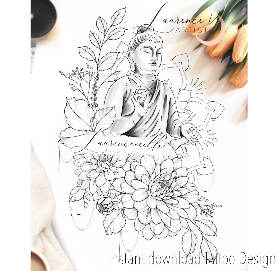 Instant Download Tattoo Design Buddha and Flowers Tattoo Printable