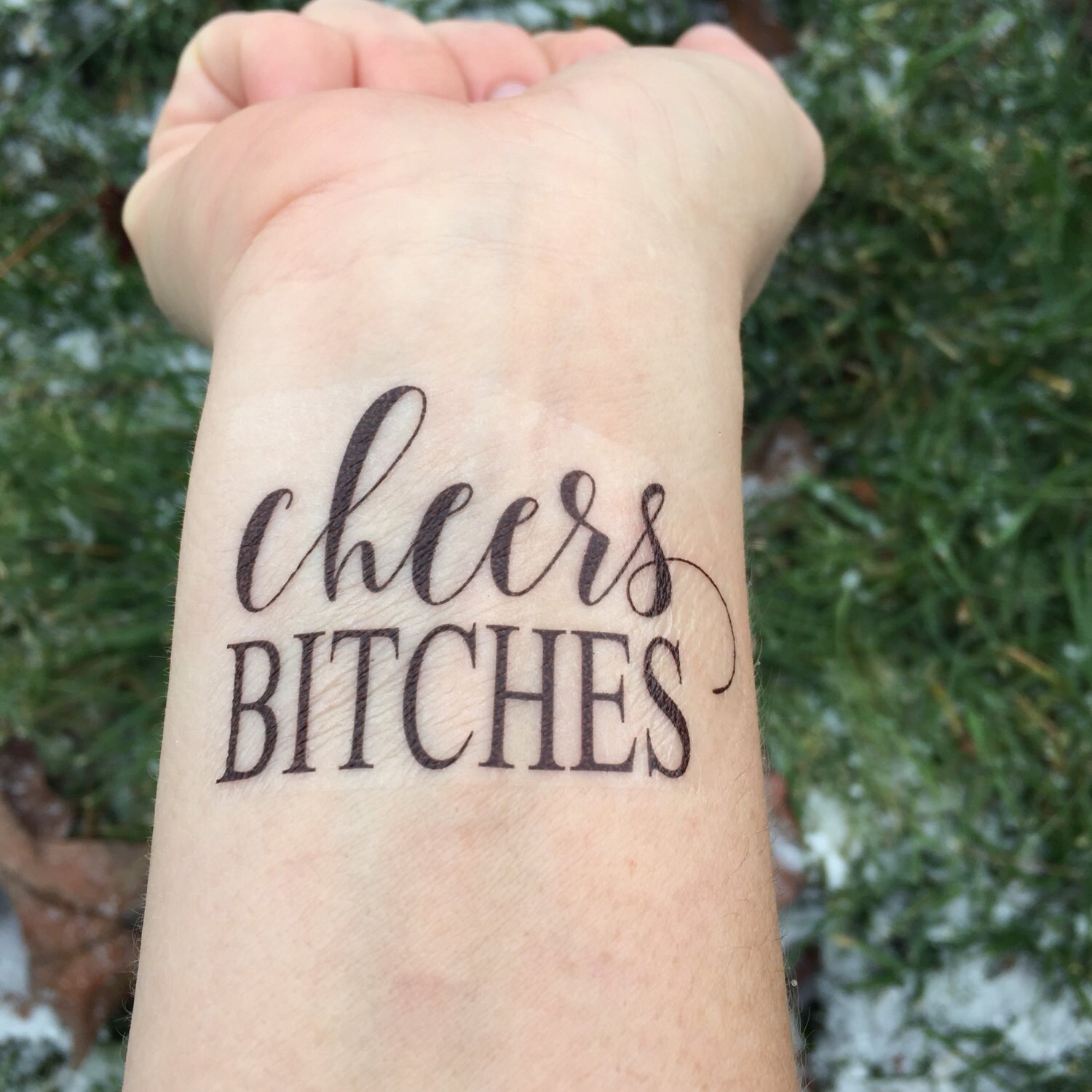 Cheers Btches Cheers Tattoo Temporary Tattoo Bachelorette Etsy