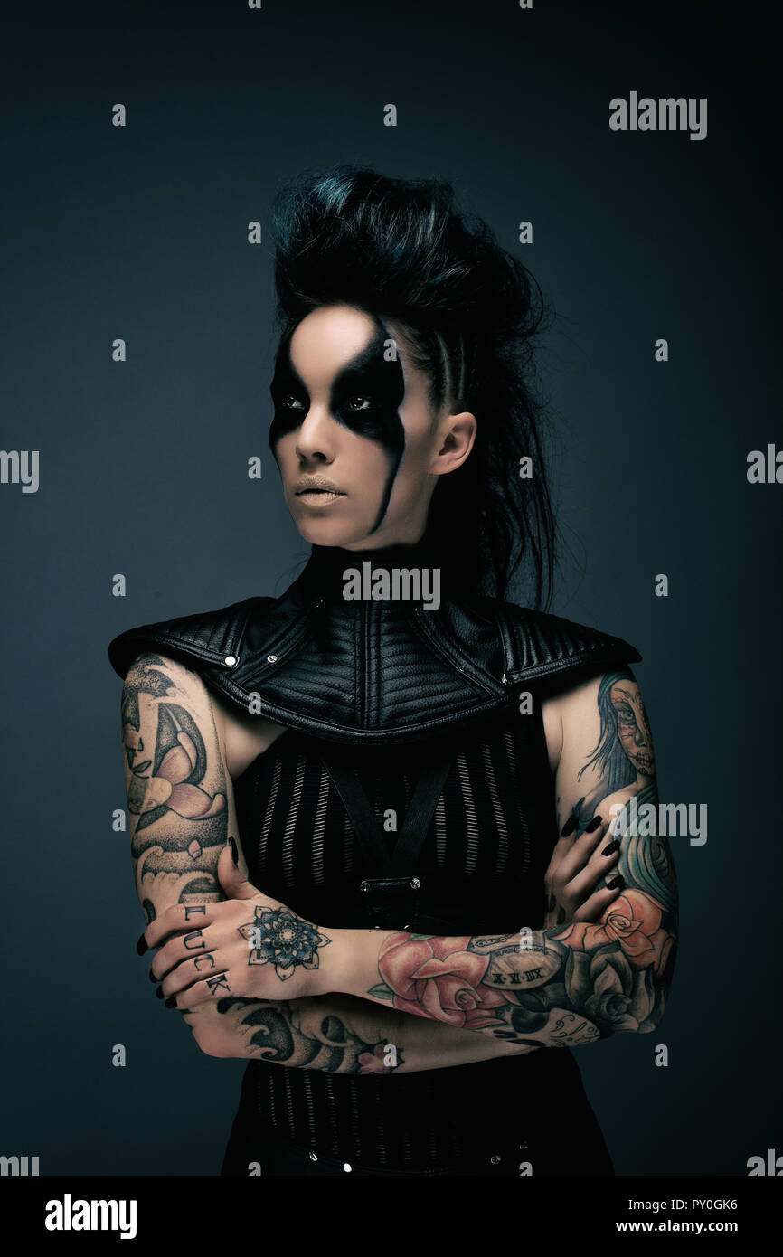 Woman, CyberGothic, tattoo, standing, Stock Photo, Picture And Rights