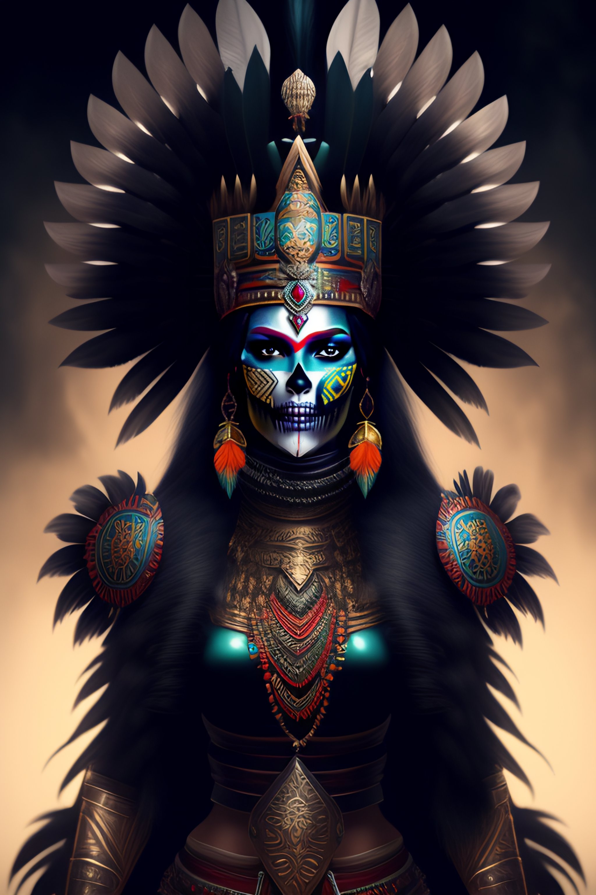 Lexica Character design, aztec warrior goddess with beautiful skull
