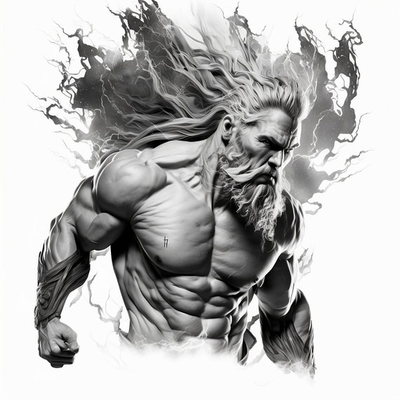 Zeus Tattoo Design White Background PNG File Download High Resolution