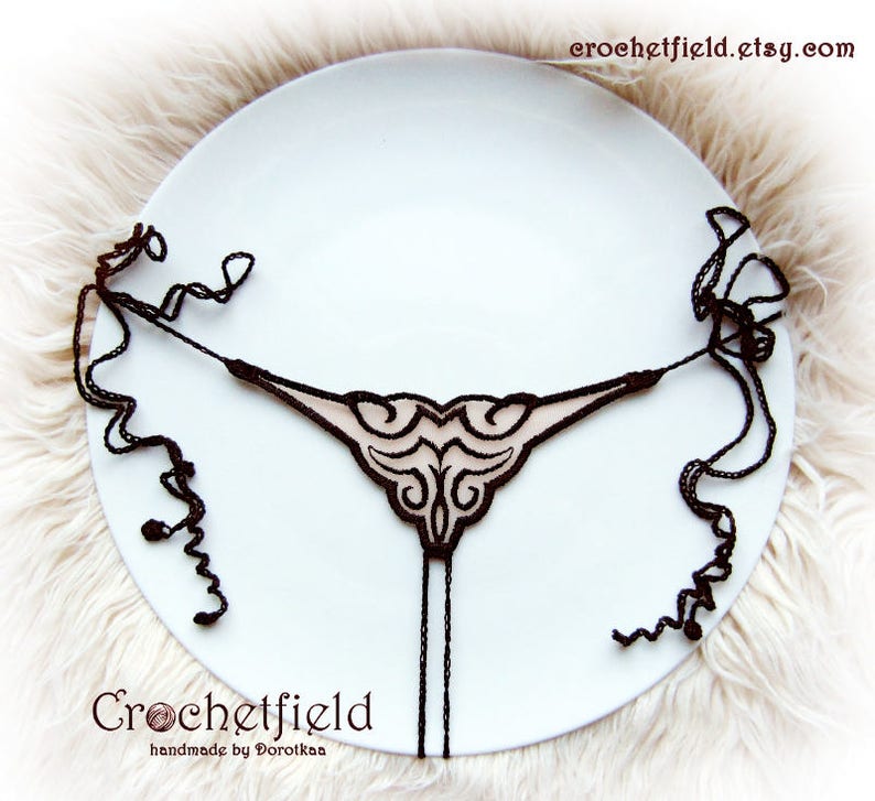Mini open thong embroidery tattoo lace crochet sheer Etsy